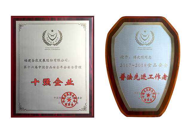 凝心聚力,砥砺前行。一直将食品安全视为企业生命,对食安发展贡献突出的圣农公司,在本届年会上荣获了“中国食品安全十强企业”、“管理创新十佳案例”、“百家诚信示范单位”称号,这也是圣农公司第八次囊括三大奖项。多年来圣农公司在在食品安全管理、食品科技创新工作中不断开拓,奋勇争先,肩负起了应有的社会责任,成为推动行业进步的排头兵。